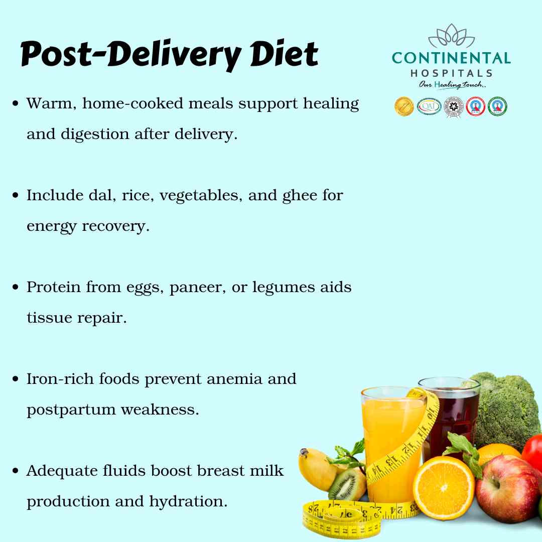 After a normal delivery, the body goes through hormonal changes, blood loss, muscle fatigue, and emotional shifts. Proper post delivery food for mother helps in:
