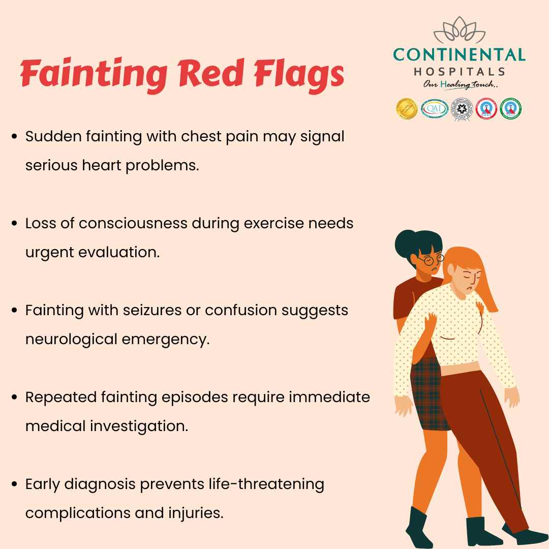 Fainting becomes a medical emergency when it is linked to underlying heart, brain, or systemic conditions. Immediate medical evaluation is needed if fainting occurs with the following warning signs.