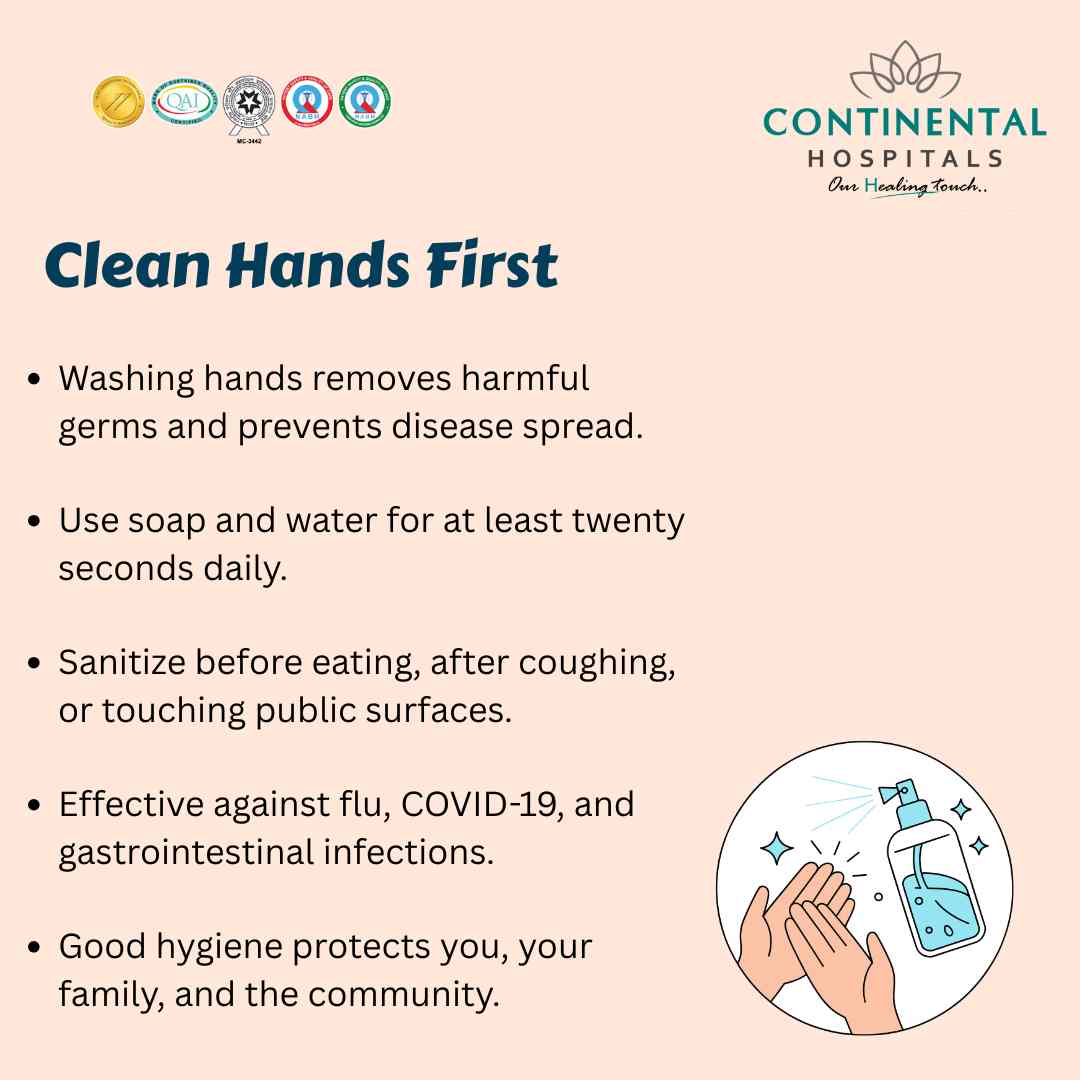 Maintaining hand hygiene is everyone’s responsibility, and at Continental Hospitals, we take it seriously. Our infection control practices, world-class facilities, and expert care ensure a safe environment for all.