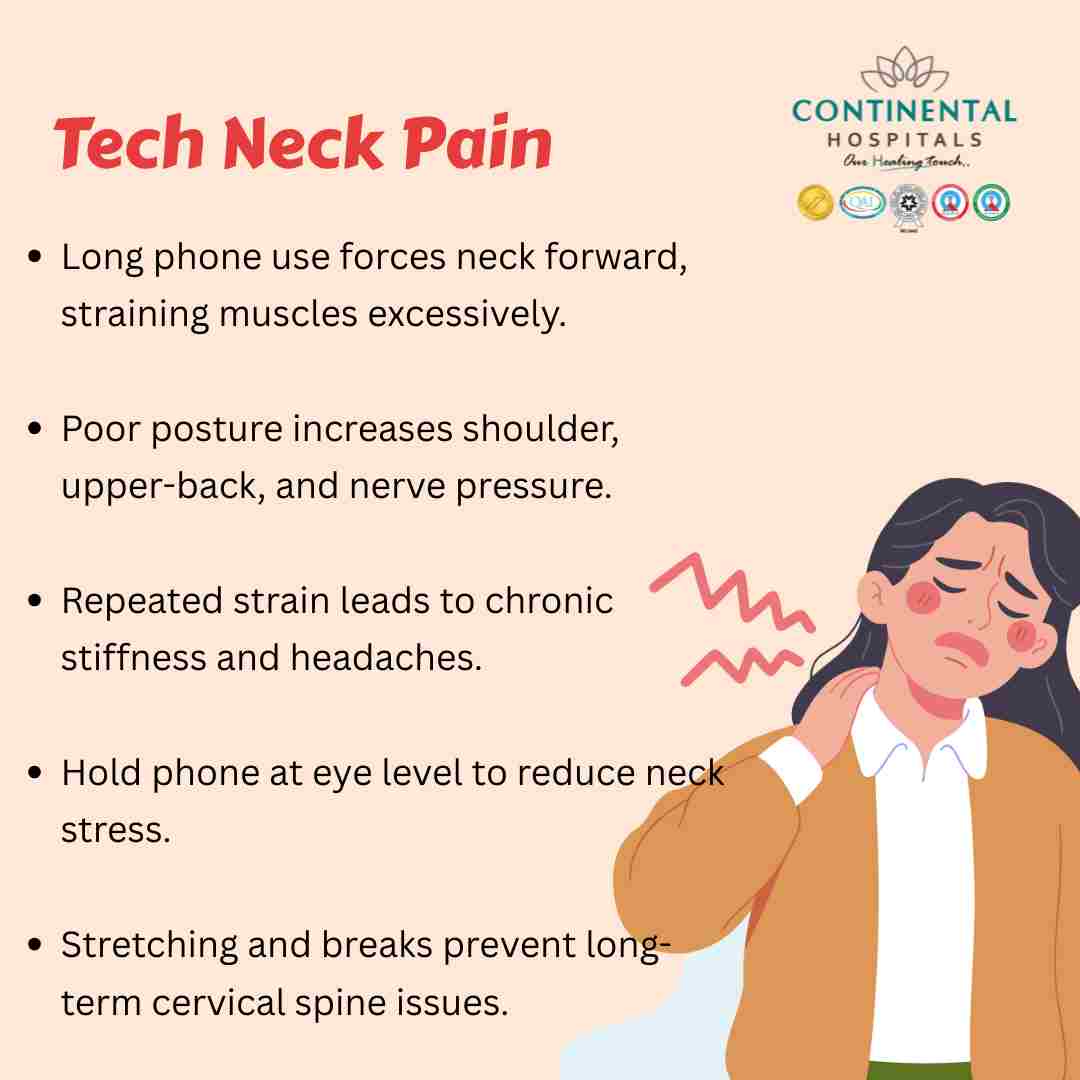 Phone neck pain is a rising concern due to increased screen time and poor posture habits. Understanding the cause and adopting healthy habits can protect your neck and spine. Simple posture correction practices, regular stretching, and mindful phone use can significantly reduce smartphone neck strain. If your symptoms are persistent, the specialists at Continental Hospitals can help you manage pain effectively and prevent long term complications.