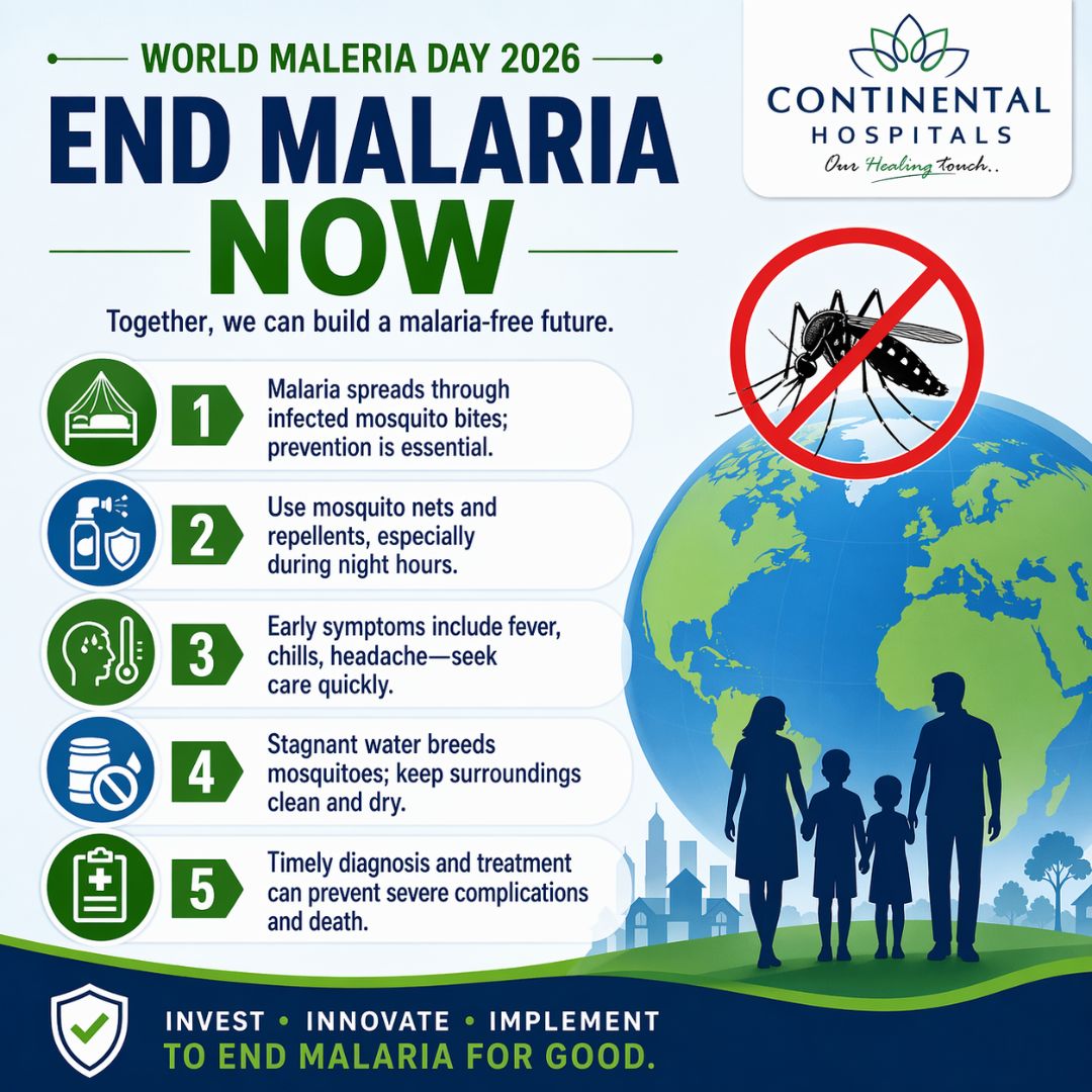 The fight against malaria is one of the most significant public health challenges of our era. Every year, World Malaria Day serves as a critical reminder of the collective effort required to eliminate this life-threatening disease. As we observe World Malaria Day 2026, the global community stands at a pivotal juncture. This year, the theme is Driven to End Malaria: Now We Can. Now We Must underscores the urgency and the tangible possibility of a malaria-free world. At Continental Hospitals, we are committed to being at the forefront of this battle, providing world-class care and driving awareness to protect our community.